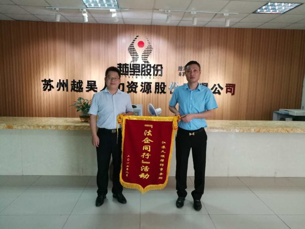 我所执行主任、合伙人律师王宇走访苏州越吴人力资源股份有限公司