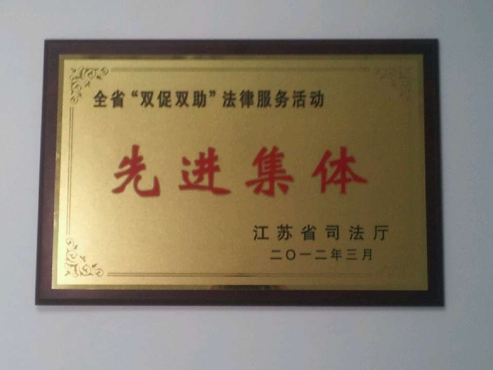 江苏久顺律师事务所于2012年3月被江苏省司法厅评为全国“双促双助”法律服务活动先进集体。