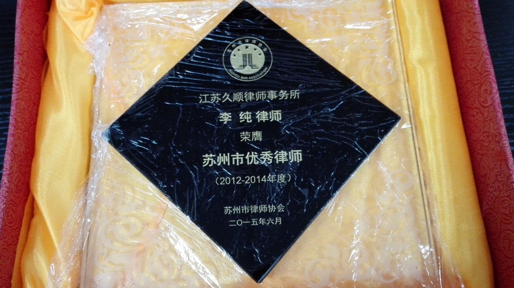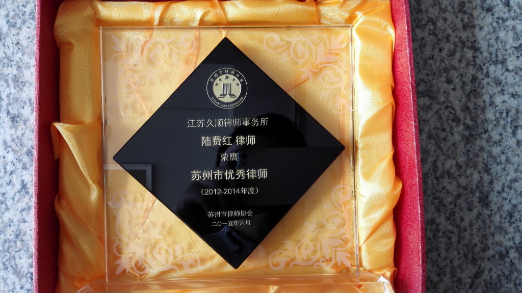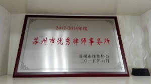 在2012-2014年度中,我所再次被苏州市律协评为“苏州市优秀律师事务所”,彰显了我所一直以来的优秀传统。于此同时,我所主任陆费红和副主任李纯凭借其专业法律服务水平脱颖而出,再次荣获“苏州市优秀律师”。