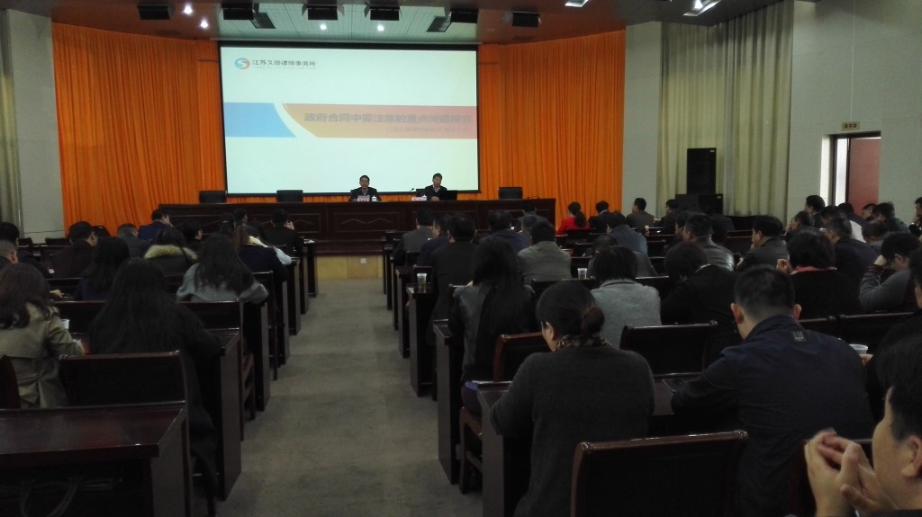 2016年11月12日,我所高军主任在甪直镇人民政府会议厅对甪直镇、村各级主要领导进行了题为“政府合同中需注意的重点问题探究”的讲课。