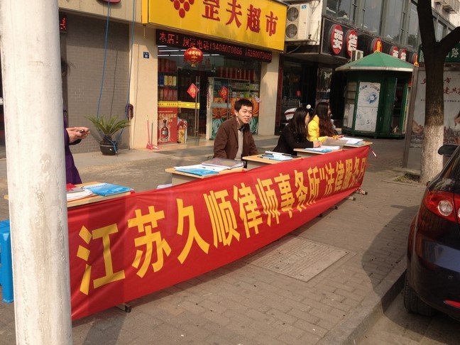今年是纪念“向雷锋同志学习”活动50周年,为大力弘扬“奉献、有爱、互助、进步”的志愿者精神,相应政府号召,江苏久顺律师事务所积极组织义务法律咨询活动活动,以实际行动弘扬和践行新时代雷锋精神。 2013年3月5日,我所在苏州市吴中区龙西路与吴中西路路口南设立义务法律咨询点,为过往的群众提供义务法律咨询,不少群众前来咨询,活动得到了人民群众的充分肯定。