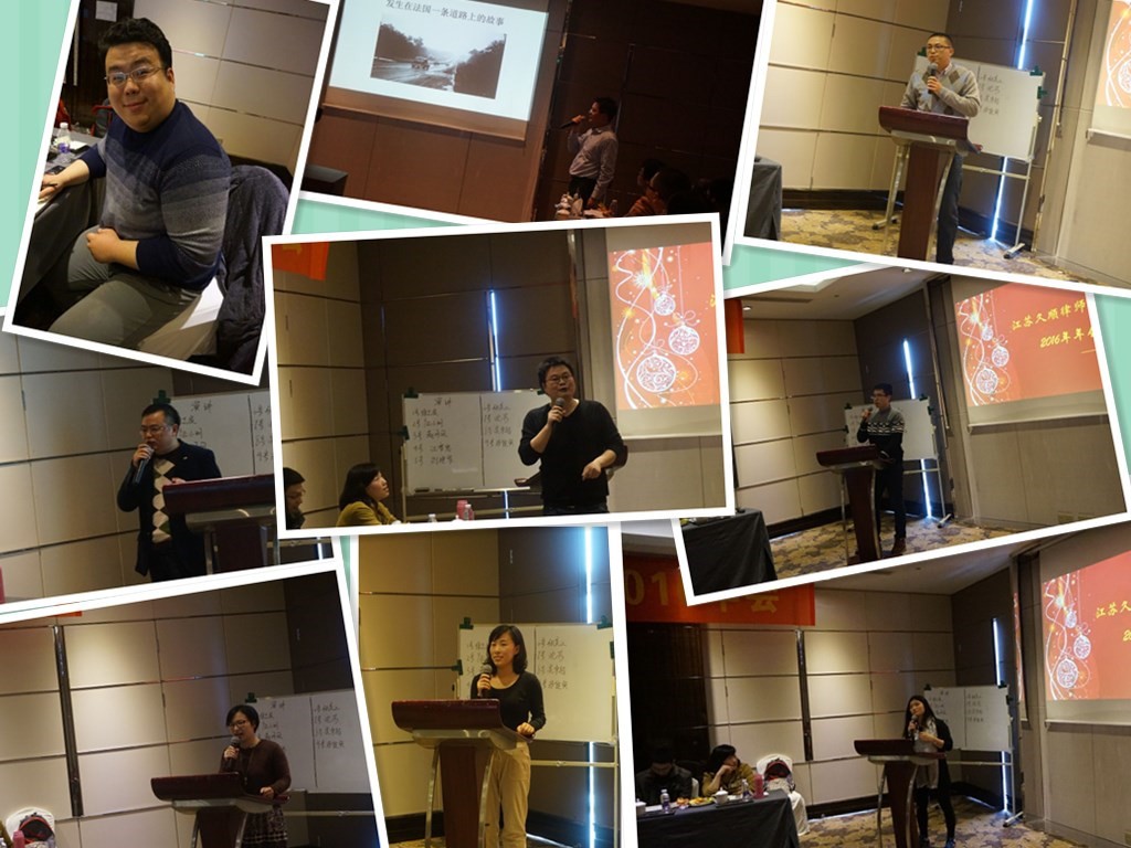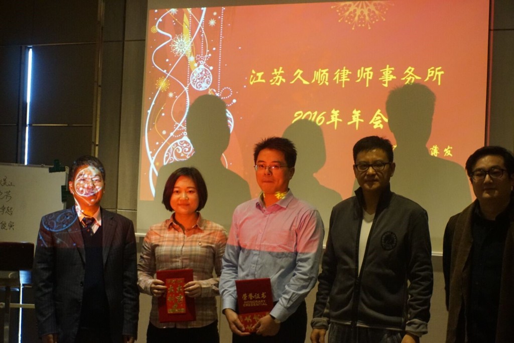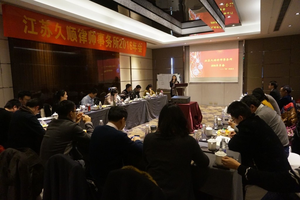 在全体久顺人新年祝福声中,江苏久顺律师事务所年会于2016年1月16日在江南古镇南浔花园名都大酒店举行,我所近30位律师和工作人员出席了本次会议。