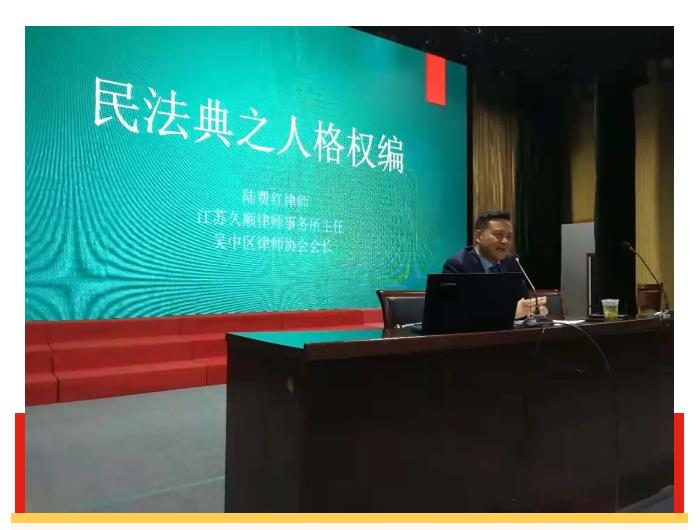 2021年4月12日,本所陆费红主任前往木渎中学为培东班初一初二学生开展法治培训讲座,对《民法典》中人格权编进行介绍和解读。