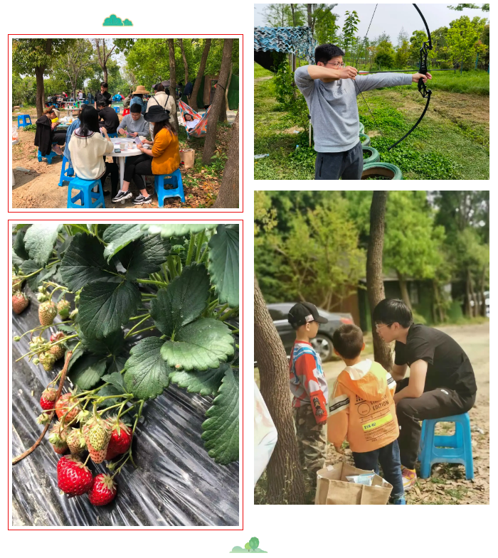 吃饱喝足后,大家分成各个小队各自开展活动,或是去体验射箭、越野车、迷宫、真人CS,或是自行组织掼蛋、摘草莓、探讨奥特曼家族……春日的阳光里充满着和谐美好的团队气息。
