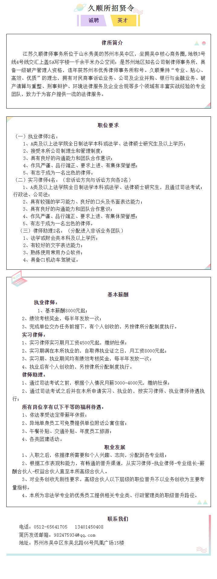招聘|江苏久顺律师事务所招贤令