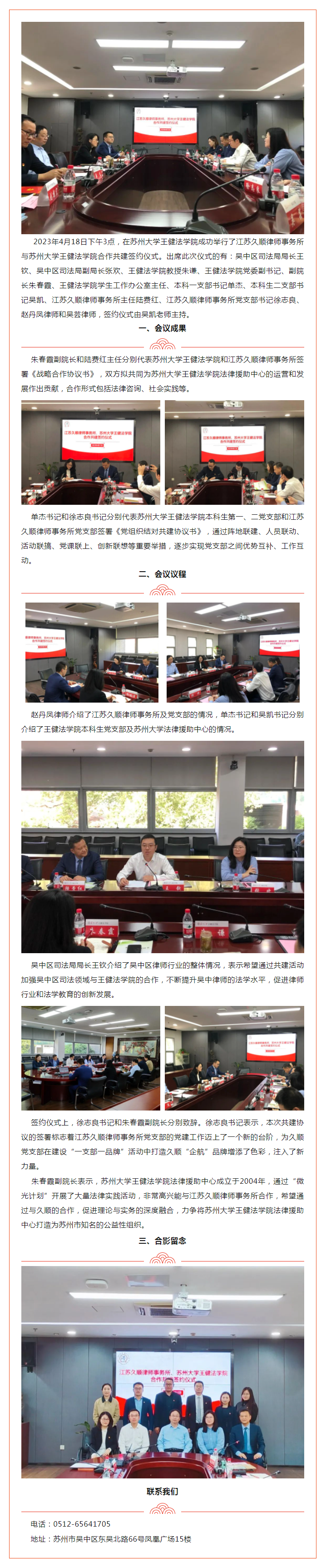 快讯|苏州大学王健法学院与江苏久顺律师事务所合作共建签约仪式顺利举行
