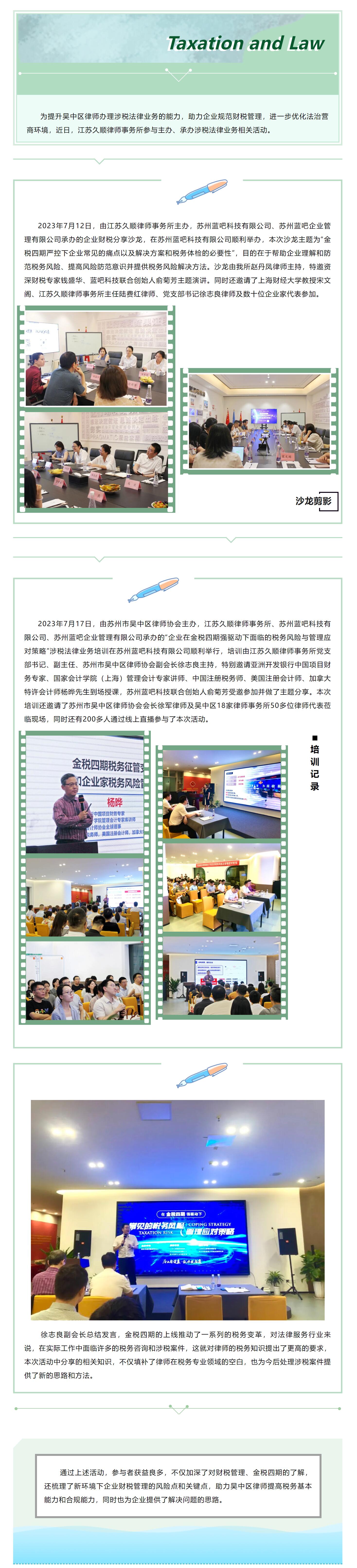 简讯|2023企业财税分享沙龙及吴中区涉税法律业务培训顺利举行