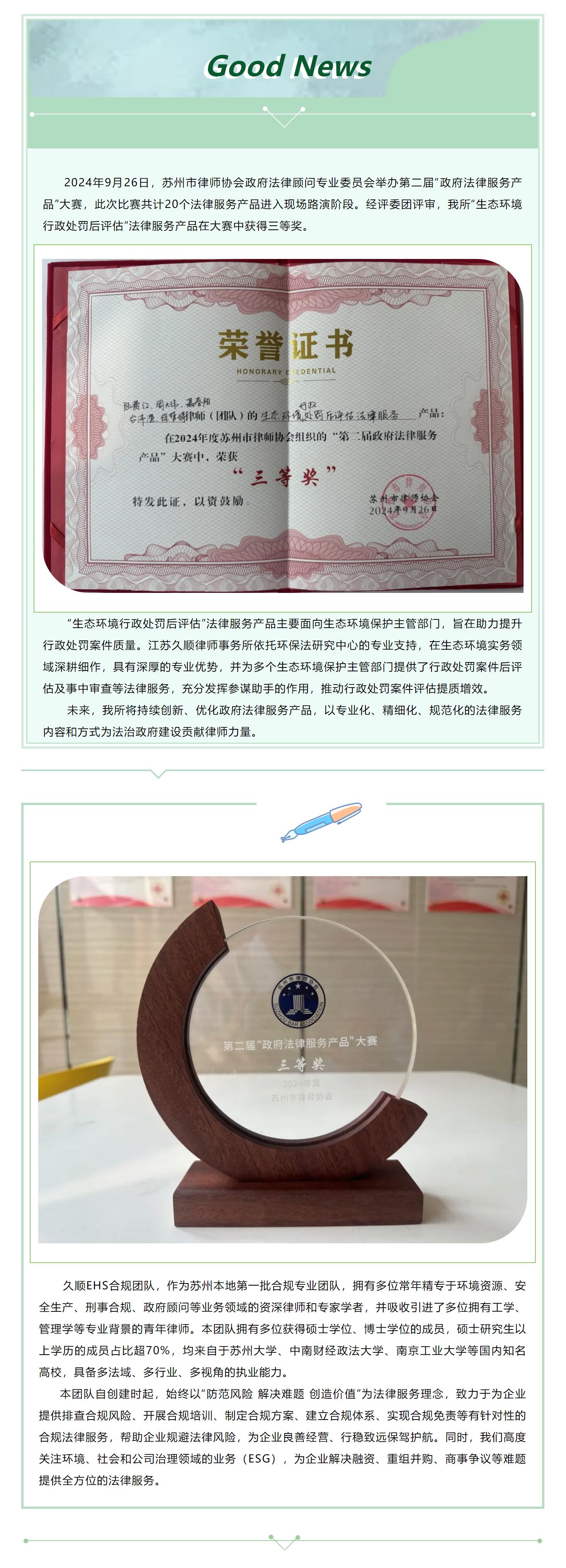 喜报|久顺法律服务产品获第二届“政府法律服务产品”大赛三等奖