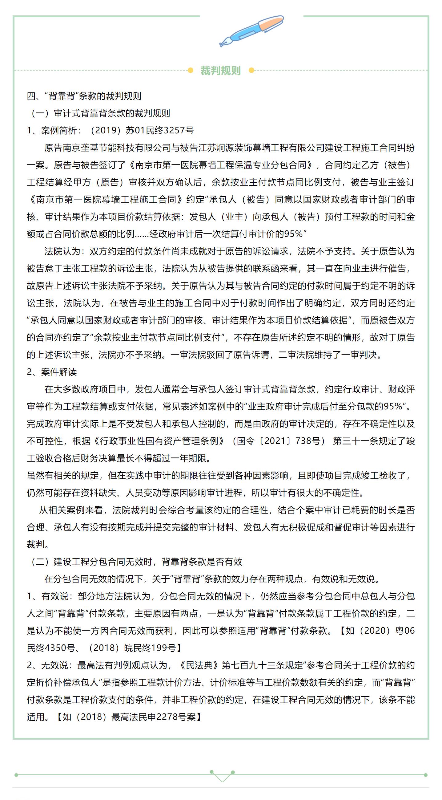 文章|建设工程“背靠背”条款初探