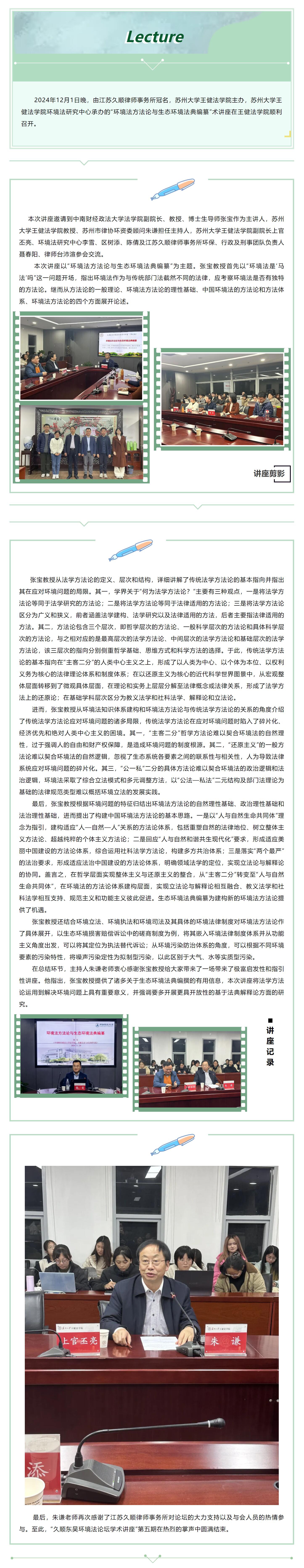 讲座|久顺东吴环境法论坛学术讲座第五期 环境法方法论与生态环境法典编纂