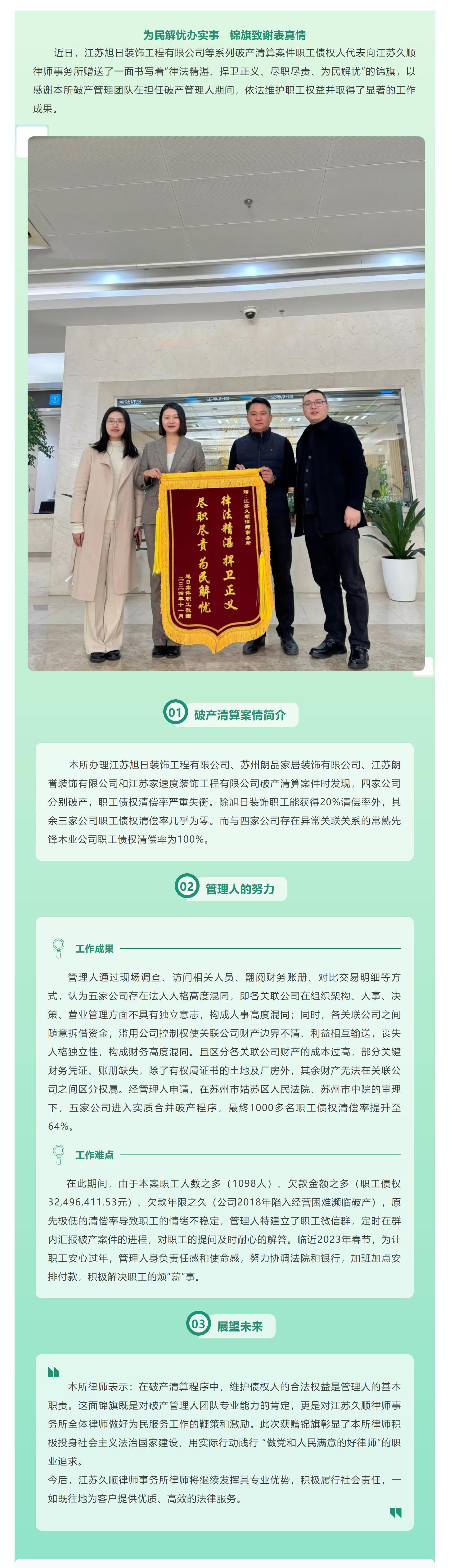简讯| 破产企业职工向本所破产管理团队赠送锦旗以示感谢