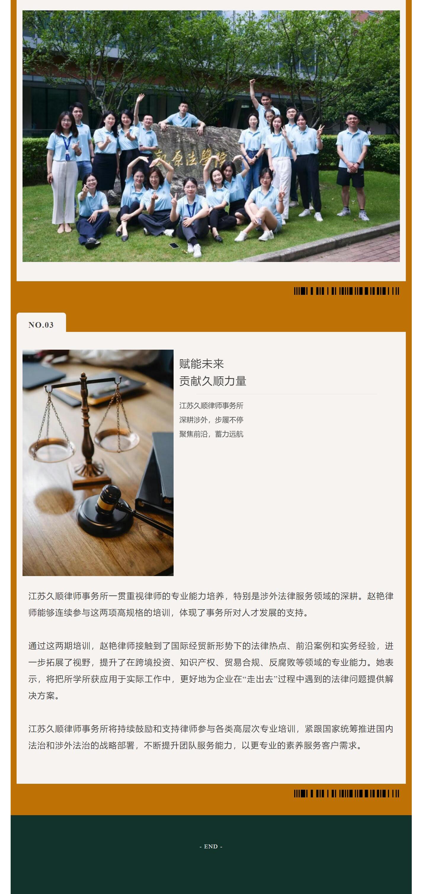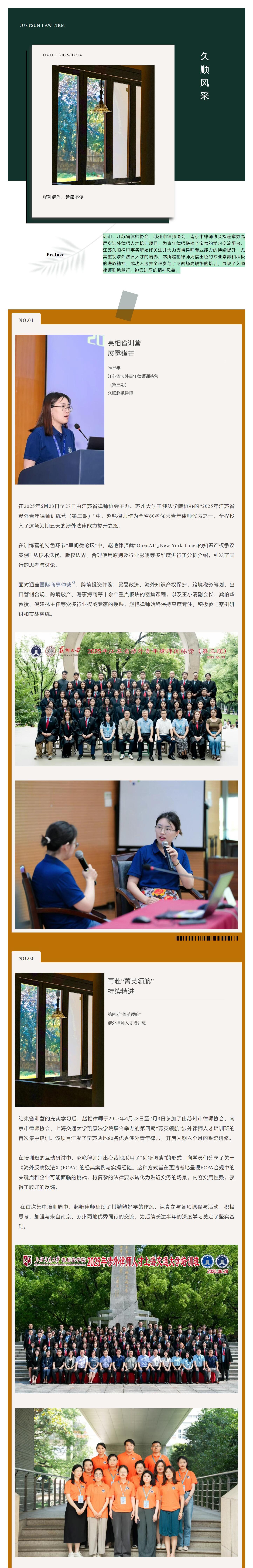 久顺风采| 聚焦涉外法律前沿,笃志前行不怠——赵艳律师踏上高层次培训新程