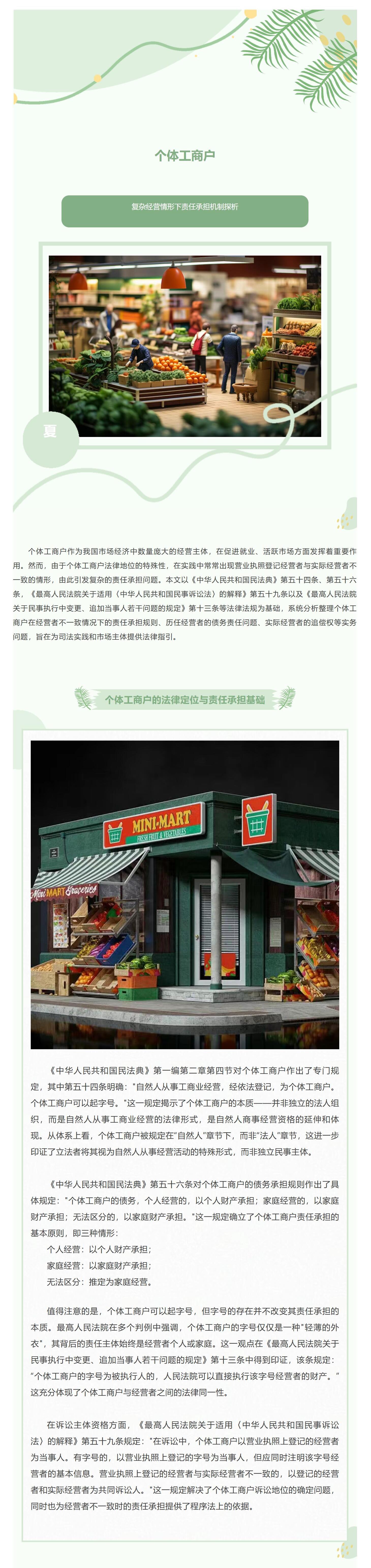 久顺文思丨个体工商户复杂经营情形下的责任承担机制探析