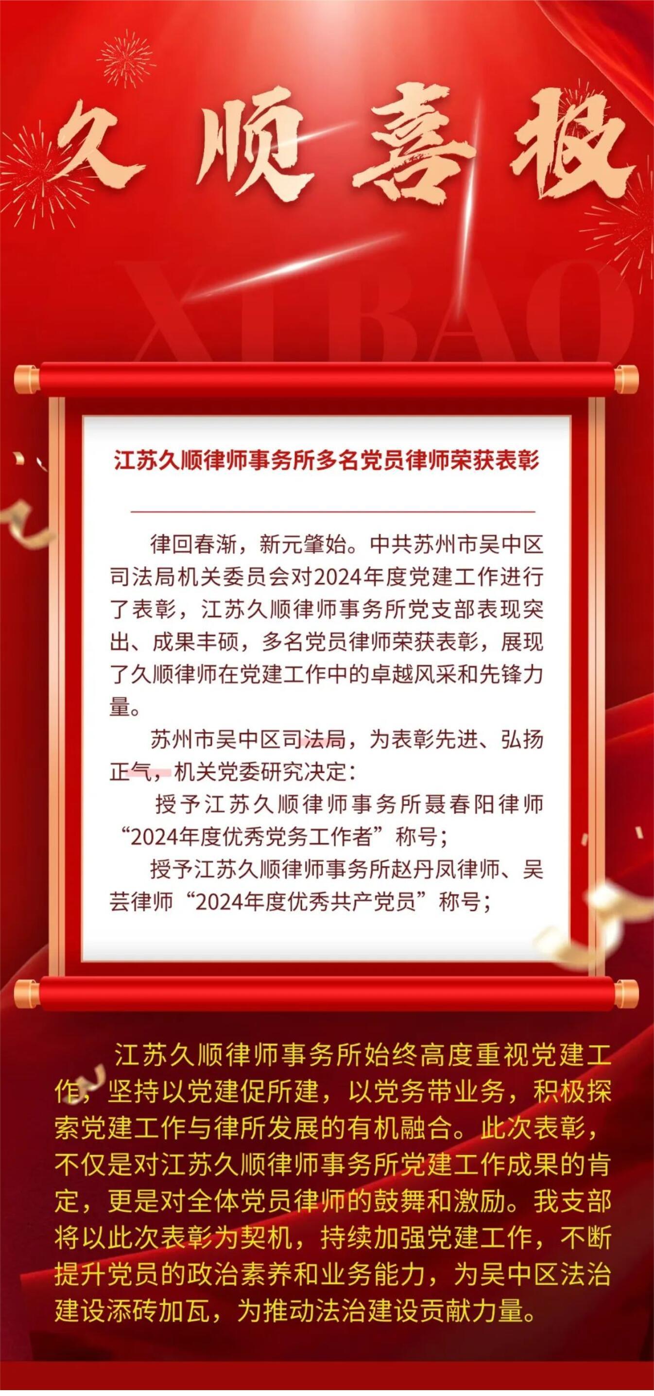 久顺喜讯|多名党员律师荣获表彰,彰显先锋模范作用
